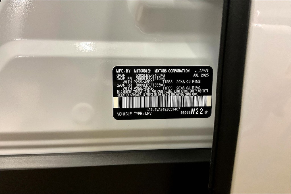 - Front tires: 255/45WR20.0