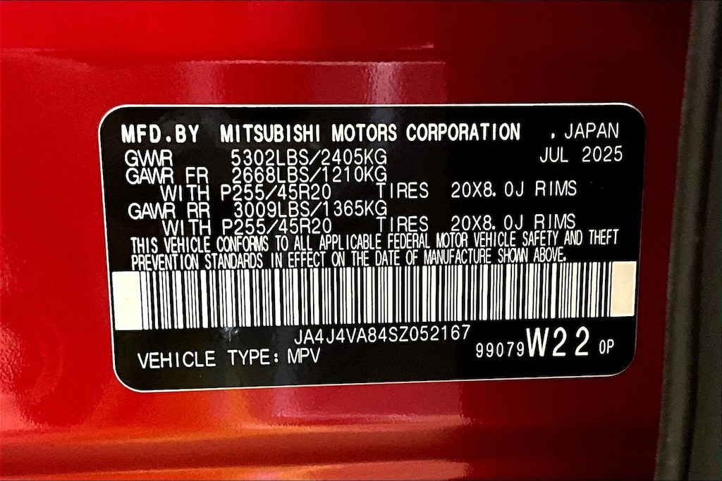 - Front tires: 255/45WR20.0
