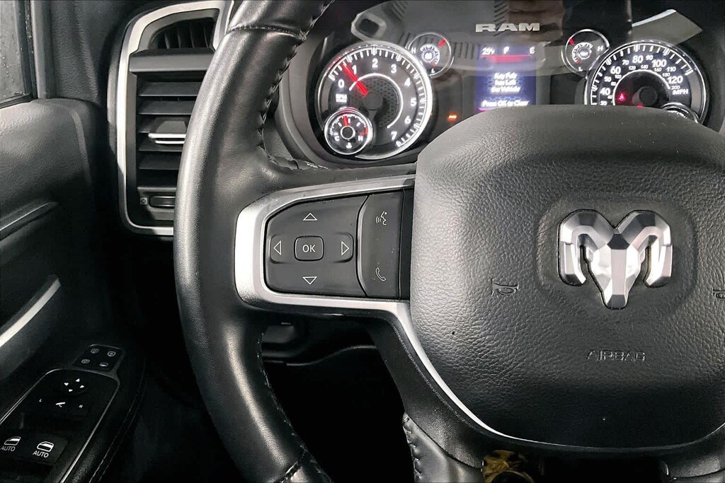 4x4, Back-Up Camera, iPod/MP3 Input, Trailer Hitch, Keyless Start Ram Big Horn with Diamond Black Crystal Pearlcoat exterior and Black interior features a 8 Cylinder Engine with 410 HP at 5600 RPM*.